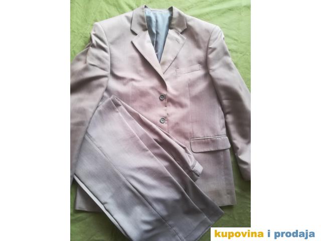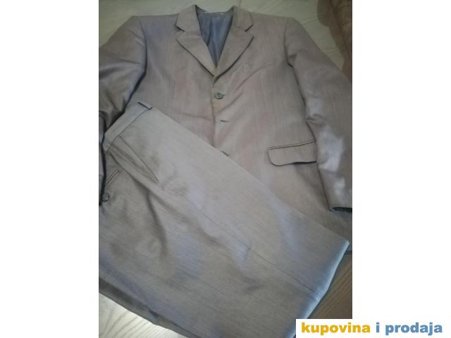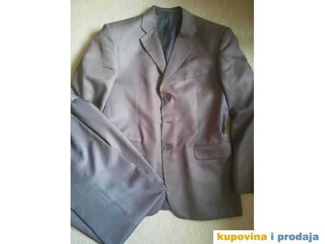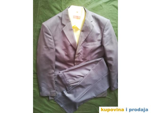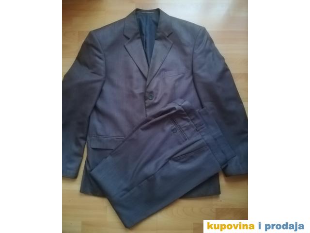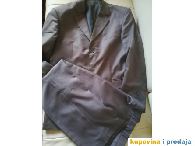 Odelo Bramy vel 50, sive boje, materijal se kao malo presijava, vrlo kvalitetno, obim grudi 110 cm, obim struka na pantalonama 82 cm, nošeno.Pantalone sasvim u redu, sako ima tragove nošenja, vidi se sve na slikama-na reverima...