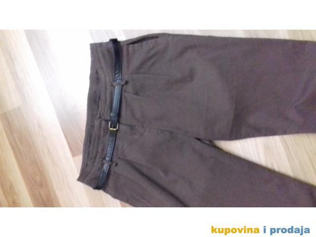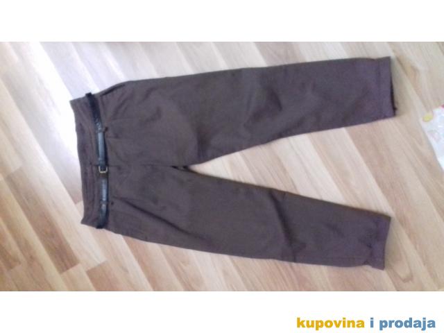 prodajem crne pantalone 7/8 duzine sa falticama i braon pantalone sa kaisem duzine7/8.Pamucne su i bez tragova nosenja.cema oba para750din,pojedinacno 400din.