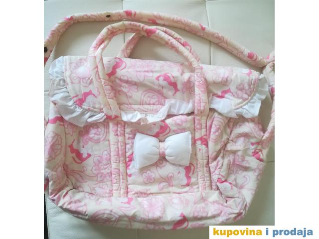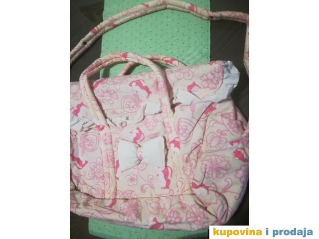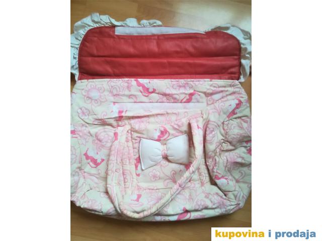 Torba za mame, dimenzije 40x30x17 cm,unutrašnjost kao nova, nema pregrade već bele džepove sa strane, jako čvrsta, izuzetno stanje.