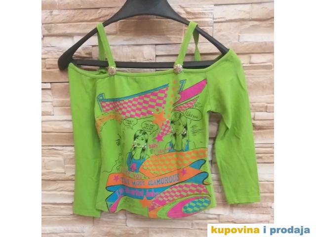 Prodajem zelenu drecavu majicu sa isto takvim veselim bojama. Ima 3/4 rukave.