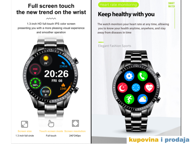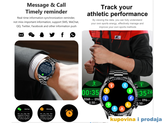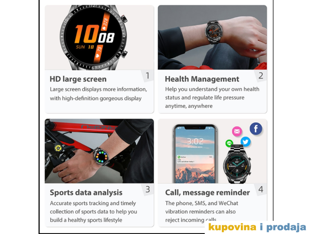 Ostale funkcije: Sedentarni podsjetnik, Pijte vodu podsjetnik, alarm na satu, daljinska kamera, odbrojavanje, pronađite telefon, podignite zglob da osvijetlite ekran, prebacite se između više brojčanika