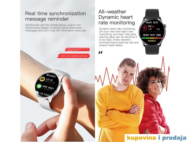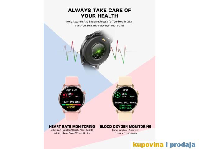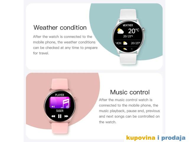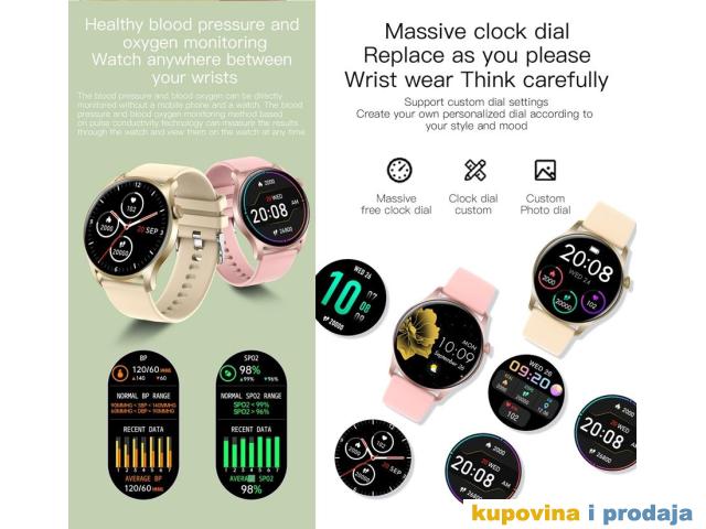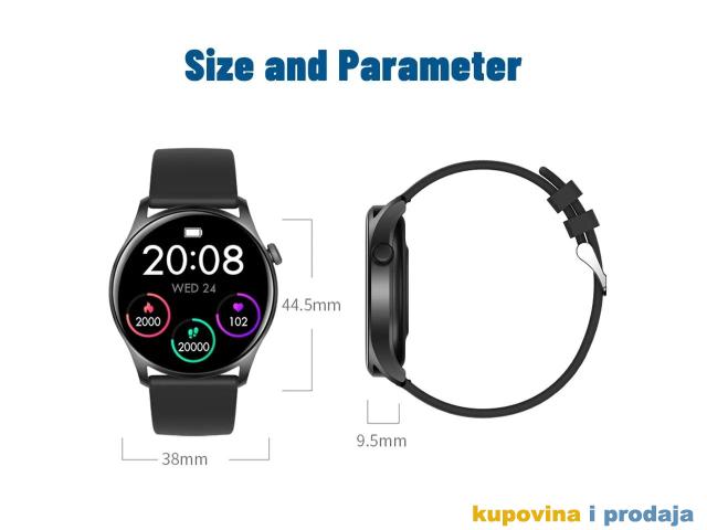 Prikaz vremena i datuma, broj koraka, kalorije, udaljenost, štoperica, odbrojavanje, praćenje otkucaja srca, praćenje krvnog pritiska, praćenje kiseonika u krvi, praćenje sna (vrijeme spavanja, kvalitet sna)