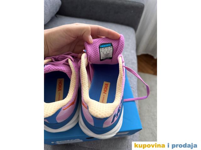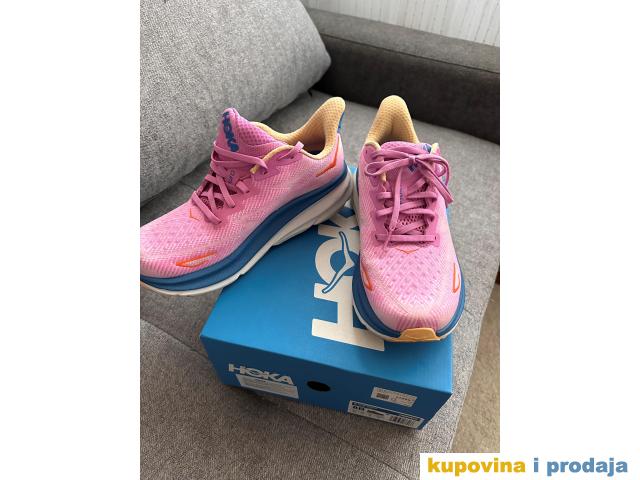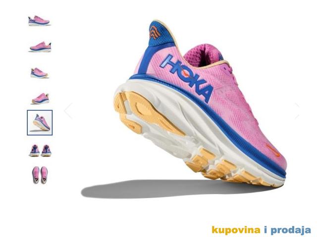 Hoka One One Clifton 9 W su ženske patike za trčanje, koje obožavaju mnoge trkačice. Ovo je deveta generacija jednog od najpopularnijih modela brenda Hoka. Nova verzija i dalje nudi idealnu kombinaciju mekoće i lakoće. Odlikuje je lakši, osetljiviji srednji đon, koji omogućava veoma slično iskustvo trčanja kao prethodne verzije. Iako je đon na ovom modelu lakši, viši je za 3 mm. Clifton ostaju udobne patike za svakodnevni trening, koje su osvežene novom CMEVA penom za odzivnost i poboljšanim dizajnom đona. Gornji deo patike, napravljen od vazdušno projektovane mreže, koji je izrađen od recikliranih materijala, mnogo je jednostavniji u odnosu na prethodnu verziju, dok je deo pete bogato podstavljen sa unutrašnje strane i opremljen reflektujućim materijalom. Durabrasion spoljni deo đona nudi dobro prianjanje i izdržljivost na urbanim površinama.