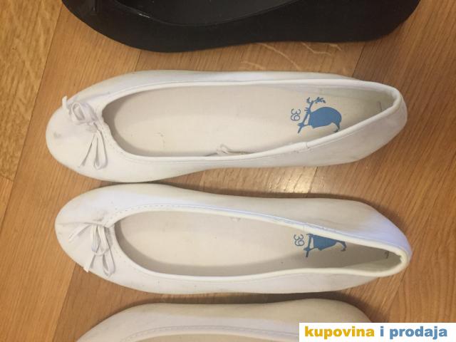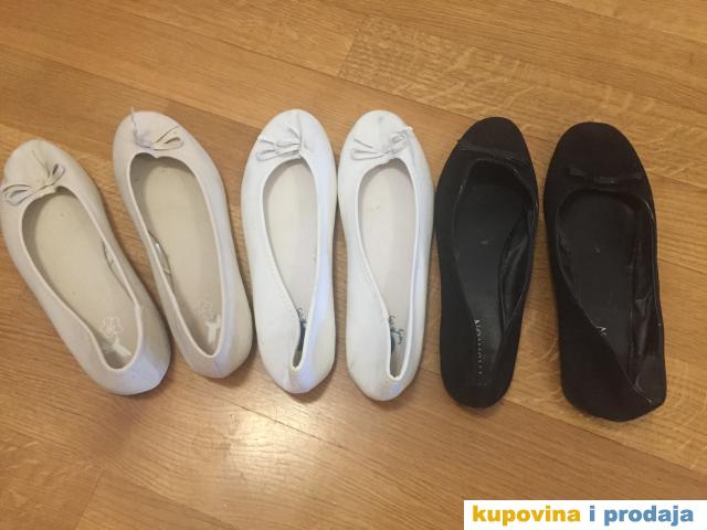 Prodajem tri para baletanki, bež, bele i crne boje, sa masnicom napred, veličina 39, gazište 25,5cm, nosene samo jednom svake, ne odgovaraju mi zbog masnice, prodajem sva tri para zajedno a može i odvojeno, može dogovor. Oprane, malo iskrivljene jer su stajale u kutiji sva tri para.