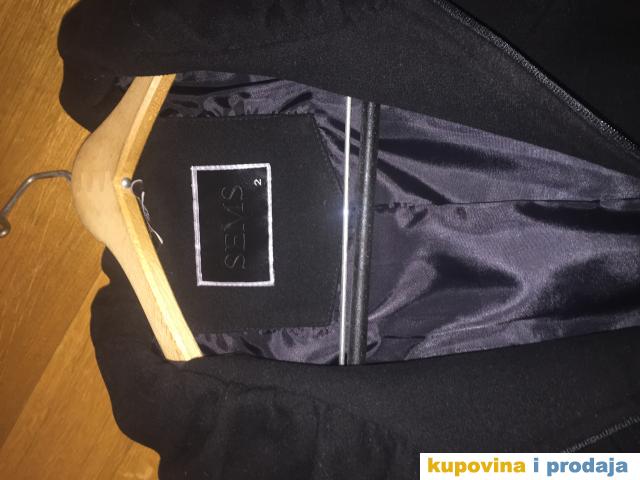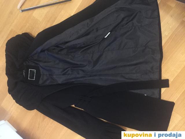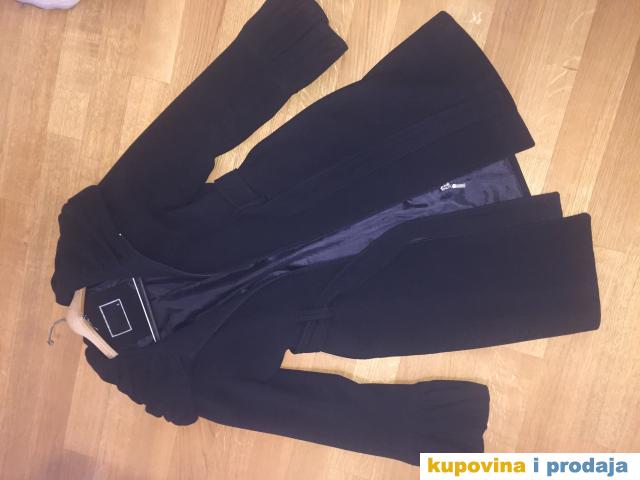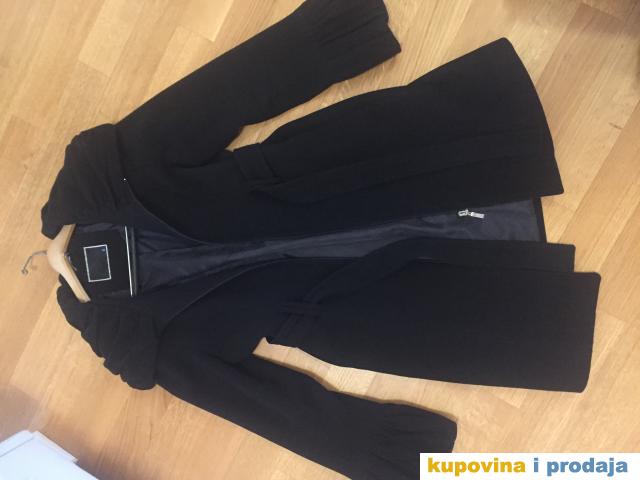 Ženski kaput,M veličina, sa pufnastom kragnom i pufnastim rukavima, ima rajsferšlus umesto dugmadi, nošen dva meseca u trudnoći,kupljen samo zbog rajsfeslusa zbog trudnoce, kao nov, nošen na hemijsko čišćenje, topao a lagan, crne boje.