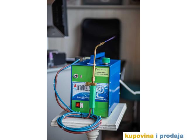 BEZ UPOTREBE OHIGENA I ACETILENA. Sluzi za zavarivanje celika, bakra, mesinga, za izvodjenje centralnog grejanja, gasnih instalacija, frigo instalacija, hladnjaca, popravke automobila, zubne protetike, zlatarskih radova ,za izradu nakita od stakla, za termicku obradu alata. JEDAN SAT RADA OVIM APARATOM KOSTA 17din. Aparat radi na: 1) monofaznu struju 220V 2) jacina uredjaja je 2,2 KW 3)potrosnja vode 2,5dl na 2h rada 4)tezina uredjaja 18 kg 5)proizvodnja gasa 9L/min (0,540 m3/h) tel:063/616-496 e-mail: tomy@ptt.rs