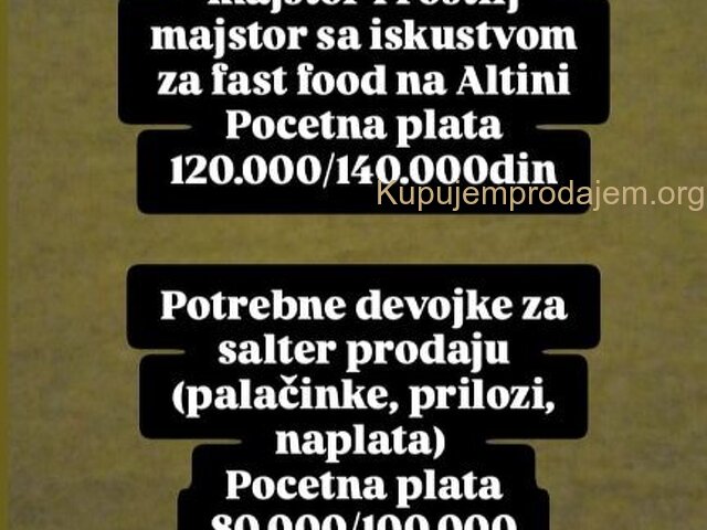 Potreban pizza majstor i roštilj majstor sa iskustvom za fast food na Altini.