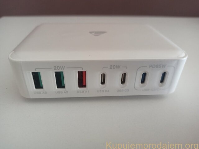 3 USB regular - 20w 2 USB-C - 20W 2 USB-C - 65W Nov vrhunski Gan 7 Port Fast Charger Station 165w punjac. Poslednji na stanju. Punjac je samo otvoren iz orginalne ambalaze radi slikanja i test probe. Moguce je puniti laptopove sa USB C do 65W, ujedno i reg mob telefone, kako preko usb-a tako i preko usb-c konekcije. Raspon napona od 5V-20V sa pratecom amperazom, slika samog uredjaj poledjine! Zadnja slika! Punjac se prodaje kao na slici, sa naponskim kablom. ********Licno Preuzimanje u Nisu. Slanje posle uplate, postexpresom. Cene Fixne / Slike u radu ! Pročitajte više