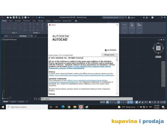 Autodesk AutoCAD 2022! Full verzija! Trajno licenciran AutoCAD! Korišćeno.