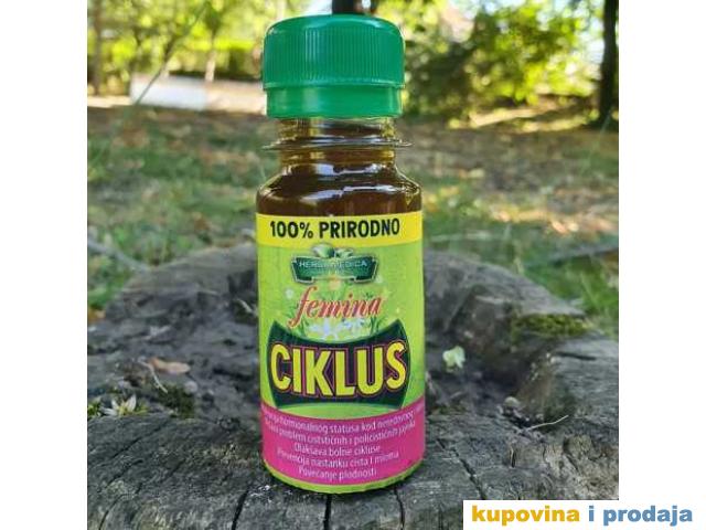 Femina ciklus biljne kapi od odabranog lekovitog bilja pomažu kod bolnih i obilnih menstruacija, poremećaja menstrualnog ciklusa, izostanka, menstruacije, ženskog steriliteta. Biljne kapi koje će vam pomoći kod produženih bolnih ciklusa, poboljšati prohodnost jajovoda i normalizaciju rada hormona estrogena i progesterone.