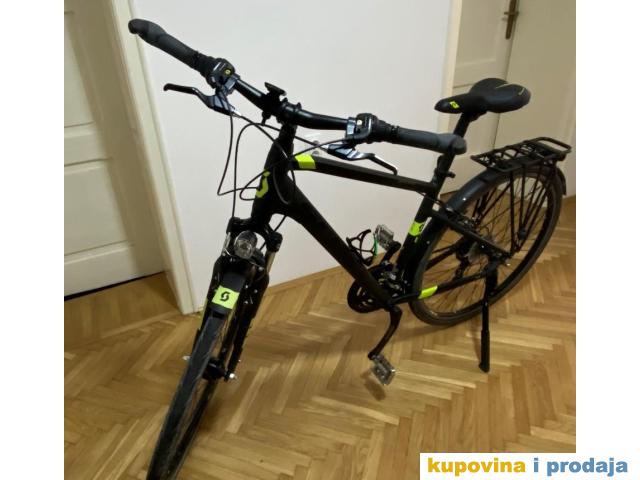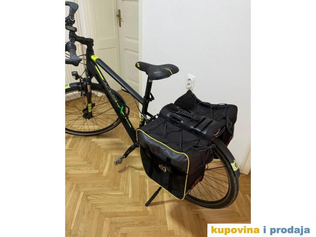 Jedinstven City Trecking bicikl SUB 40 Sport , kupljen u Planet Bajku krajem 2018 god u M velicini. . Veoma dobro ocuvan i vozen na svega nekoliko duzih tura . Grupa je 3x7 Tourney XT , sa velo rucicama i multifunkcionalnim pedalama . Ima ugradjenu dinamu u prednjem tocku a uz bajs ide merac brzine Cateye Padrone wireless ( kupljen u Planetu ) . Prelep uzivo zbog crne mat boje ali i jedinstvenog rama . Bajs za one koji bi stavili bisage i krenuli na visednevne voznje ali i za svakodnevnu gradsku voznju .