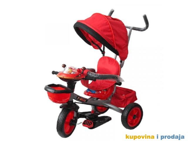 Prodajem dečiji tricikl guralicu marke Play Fruit u crvenoj boji sa zvučnim efektima, izuzetno očuvan.Cena je 3300 dinara.