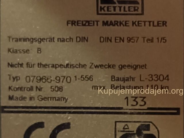 Mehaničko podešavanje opterećenja u 10 nivoa. Štelovanje rukohvata. Orginalno KETTLER sedište podesivo po visini i po pravcu- oštećeno po viisini.