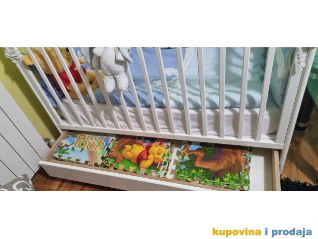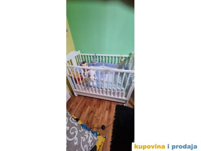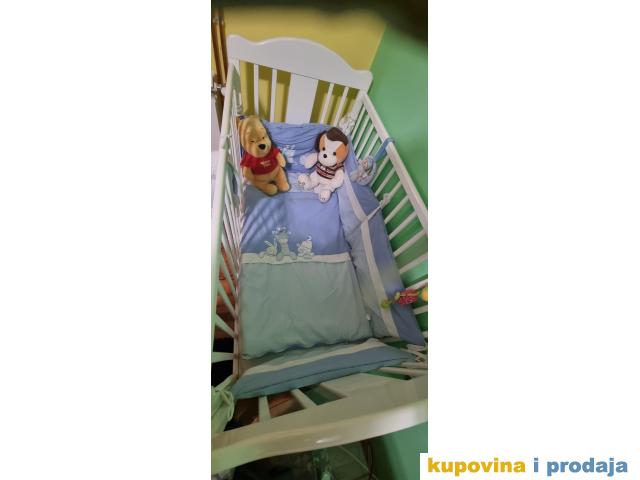 Krevetac visokog kvaliteta, koriscen za jednu bebu samo na godisnjem odmoru svega 3 meseca ukupno. Kupljen u radnji za bebe, placen 24000 din. Uz krevetac je dodatno kupljen i dusek, posteljina, kao I igracke zvecka, chicco lampa sa muzikom i slonic. Krevetac ima kutiju za posteljinu u kojoj su kocke mekane winnie the pooh koje se sastave na podu gde beba moze da lezi bez da se povredi a I da joj bude toplo. Sve to ide kao poklon uz krevetac. Cena krevetca je 100e. Krevtac se nalazi na lokaciji Zemun i bilo bi pozeljno da bilo bi pozeljno da se zainteresovani jave do 14.1. radi daljeg dogovora i preuzimanja