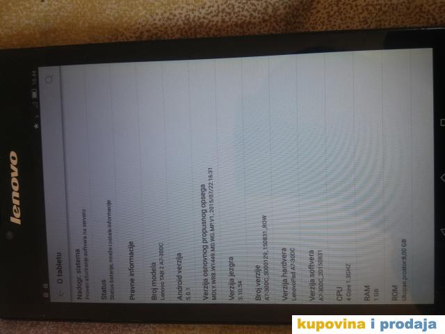 tablet je u odlicnom stanju.kupljenj je nov ja sam prvi vlasnik.baterija drzi uz normalno koriscenje 2 do 3 dana.imas sim karticu.ekran je u odlicnom stanju.saljem post exspresom na teret kupca.moj broj telefona:0652667140.na plastici iza ima sitne tragove koriscenja.ima sim karticu