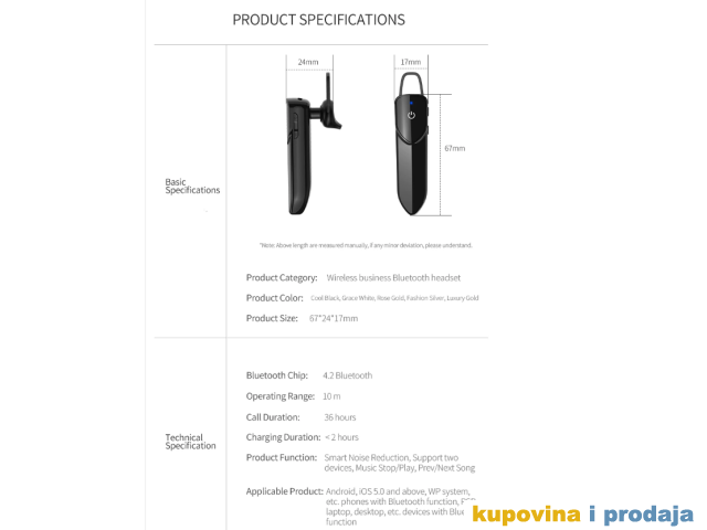 Bluetooth Handsfree Bezicna Slusalica