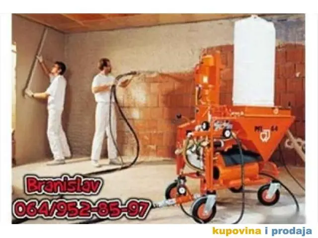 Mašinsko malterisanje Branislav  Naš tim čine iskusni i stručni ljudi koji su u ovom poslu već deset godina, te Vam stoje na raspolaganju za sledeće usluge: – mašinsko malterisanje – ravnajući sloj – cementne košuljice – renoviranje stana – renoviranje kuće – mašinsko malterisanje zidova – mašinsko malterisanje fasada – mašinsko malterisanje kuća – mašinsko malterisanje plafona Mašinsko malterisanje je u prednosti u odnosu na ručno po mnogim pitanjima. Uz pomoć mašinskog malterisanja, postiže se veća brzina u radu, bolji kvalitet omalterisanih površina, njime se lakše manipuliše pa je samim tim rasipanje i rasturanje materijala minimalno. Naši majstori rade mašinsko malterisanje svih vrsta zidova i pobrinuće se da sve bude odrađeno pedantno, kvalitetno i tačno po dogovoru tako da vama ostaje samo da uživate u novom izgledu Vašeg doma! Specijalizovani smo i za izradu ravnajućeg sloja – cementne košuljice. Cementna košuljica je pod na bazi cementa koji je namenjen za ravnanje betonske podloge kako bi kasnije bila spremna za lepljenje keramike, postavljanje parketa, laminata, raznih PVC podova,… Ravnajući slojevi podnose velika mehanička opterećenja u prostorijama, zbog čega se primenjuje poseban postupak izrade. Na taj način stvara se pod dovoljno otporan na opterećenja, vlagu i razna druga oštećenja. Pružamo i kompletne usluge u oblasti adaptacije i renoviranja stabenog prostora. Sa željom da kvalitetno, funkcionalno i estetski odgovorimo na sve zahteve klijenata, konstantno radimo na unapređenju kvaliteta naših usluga, u skladu sa savremenim uslovima življenja. Dakle, bilo da Vam je potrebno kompletno renoviranje stana ili samo mašinsko malterisanje fasade mi smo pravi izbor za Vas! Zahvaljujući dugogodišnjem iskustvu našeg tima majstora i upotrebi najkvalitetnijih materijala u mogućnosti smo da Vam pružimo vrhunski kvalitet usluge, uz povoljne cene i striktno poštovanje rokova i Vašeg vremena. Kontakt telefon: 064/952-85-97 Branislav, Beograd