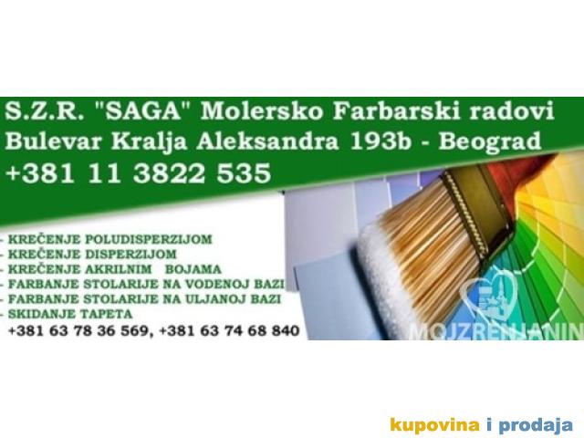 | S.Z.R "Saga" - Molersko Farbarski Radovi Bulevar Kralja Aleksandra 193b - Beograd - Krecenje Poludisperzijom - Krecenje Disperzijom - Krecenje Akrilnim Bojama - Farbanje Stolarije Na Vodenoj Bazi - Farbanje Stolarije Na Uljanoj Bazi - Skidanje Tapeta Radove izvodimo isključivo u Beogradu i okolini. E-Mail: szrsaga@gmail.com Kontakt Telefoni: +381 63 74 68 840 +381 63 78 36 569 |