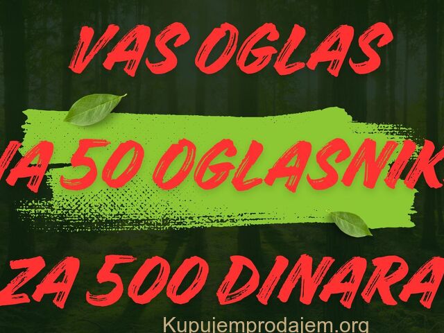Vas proizvod ili uslugu oglasavamo na 50 oglasnika koji su jako poseceni na teritoriji cele SrbijePosle postavljanja oglasa saljemo vam kompletnu listu linkova koji vode do vaseg oglasa da se uverite da su oglasi postavljeni.U oglasu su vas text i slike kao i vas kontakt telefon/viber -sve to radimo za samo 650 dinara.0692505544
