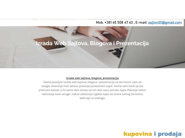 Vrsimo izradu sajtova I za fizicka I za pravna lica. Placate kada sajt bude uradjen I budete zadovoljni njegovim izgledom, u suprotnom nemate obavezu placanja.