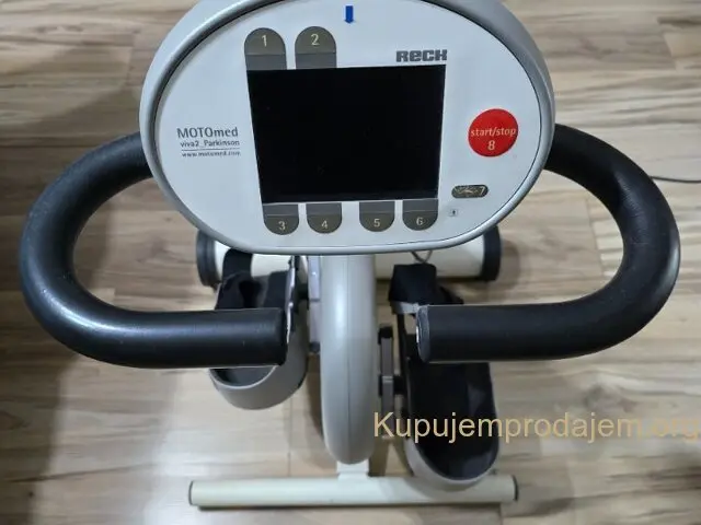 МОТОмед вива2 Класик у терапији покрета Тренажор за ноге MOTOmed viva2 је савршен додатак спортској и покретној терапији у медицинским установама и код куће, јер омогућава редовну активност независно од временских услова. Поред тога што се користи као тренажор за ноге, MOTOmed viva2 је доступан и као тренажор за ноге и руке/горњи део тела. MOTOmed тренажор за руке/горњи део тела може се окретати унутар и ван простора за тренинг. Тренинг руку/горњег дела тела јача мишиће руку, горњег дела тела и рамена и ојачава помоћне респираторне мишиће. Лични контакт Употребљивост – једноставно руковање Корисници се интуитивно крећу кроз MOTOmed екран у боји (дијагонала екрана 5,7 инча), јер је сваки могући корак приказан „зеленом бојом“. Тактилни (благо увећани), велики тастери обезбеђују лако руковање. Велики дисплеј за тренинг омогућава добру читљивост. Некретнине Стандардна опрема Тренажор за ноге (опционо: тренажор за руке/горњи део тела) заштитне шкољке за стопала подешавање радијуса педале, двостепено (7,0 цм или 12,5 цм) управљач мобилни са великим точковима (пречника 13 цм) конструкција од целог метала, врхунска и стабилна додатна стабилност захваљујући телескопском предњем постољу MOTOmed SmoothDriveSystem са благим покретањем и гашењем Заштита покрета и контрола спазма регулација брзине од 0 до 60 о/мин (пасивно) регулација снаге мотора од 1 до 10 подесите трајање терапије од 0 до 120 минута аутоматско самотестирање уређаја велики, једноставан за коришћење оперативни панел избор језика између 27 различитих језика Технички подаци Функције Додатна опрема Видео снимци Играј 00:00 00:00 Искључи звук Уђи у режим целог екрана Играј Тренинг ногу са MOTOmed-ом код куће (8:52) Играј 00:00 00:00 Искључи звук Уђи у режим целог екрана Играј Вежбање руку са MOTOmed-ом код куће (3:19) сви видео снимци